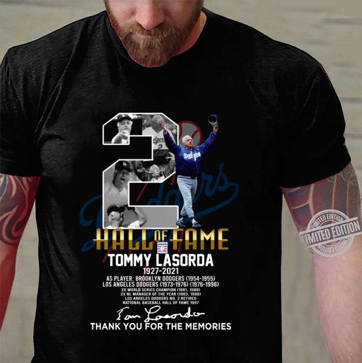 2 Tommy Lasorda Hall Of Fame 1927-2021 Brooklyn Dodgers Signature shirt, Hoodie, Sweater, Longsleeve T-Shirt For Men and Women