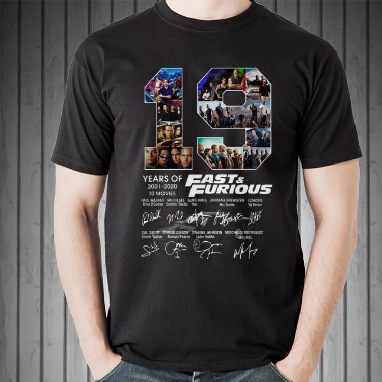 Awesome 19 Years Of 2001 2020 10 Movies Fast And Furious Signatures shirt, Hoodie, Sweater, Longsleeve T-Shirt For Men and Women