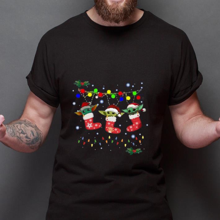 Awesome In Stock light christmas Baby Yoda shirt, Hoodie, Sweater, Longsleeve T-Shirt For Men and Women