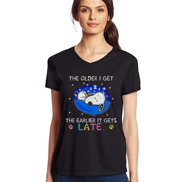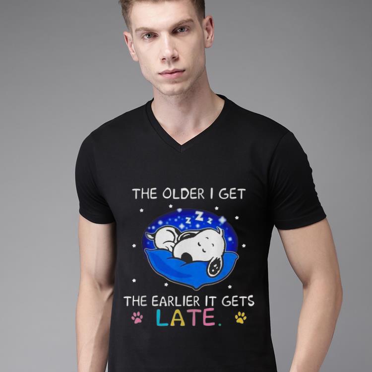 Awesome Snoopy The Older I Get The Earlier Gets Late shirt, Hoodie, Sweater, Longsleeve T-Shirt For Men and Women