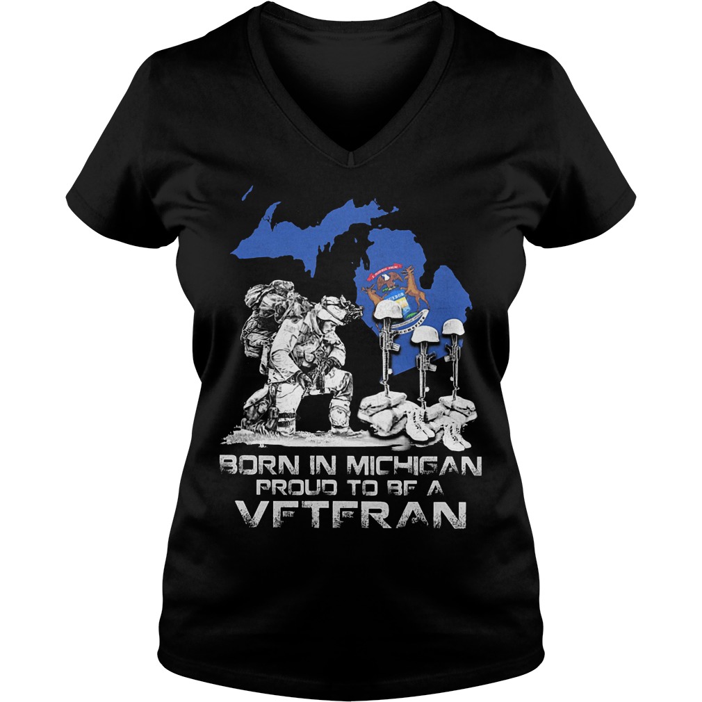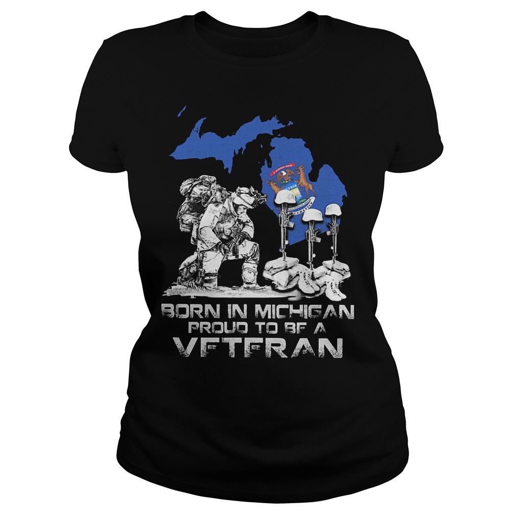Born In Michigan Proud To Be A Veteran Shirt, V-Neck, Tanktop, Ladies T-Shirt