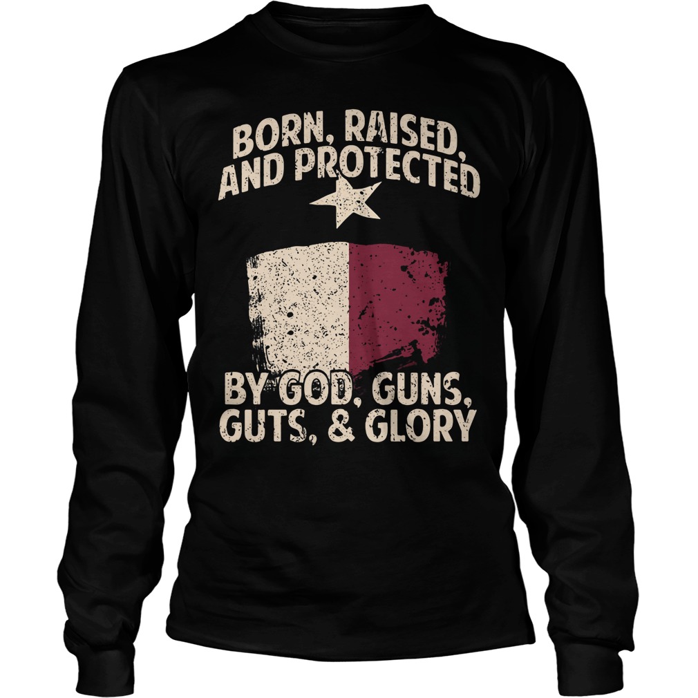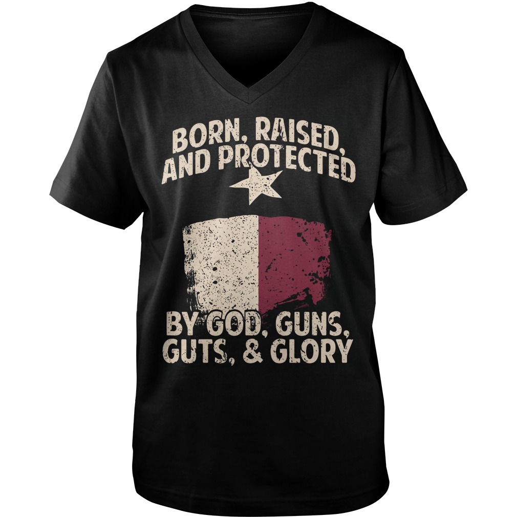 Born Raised And Protected By God Guns Guts And Glory Shirt, V-Neck, Tank-Top, Long Sleeve T-Shirt