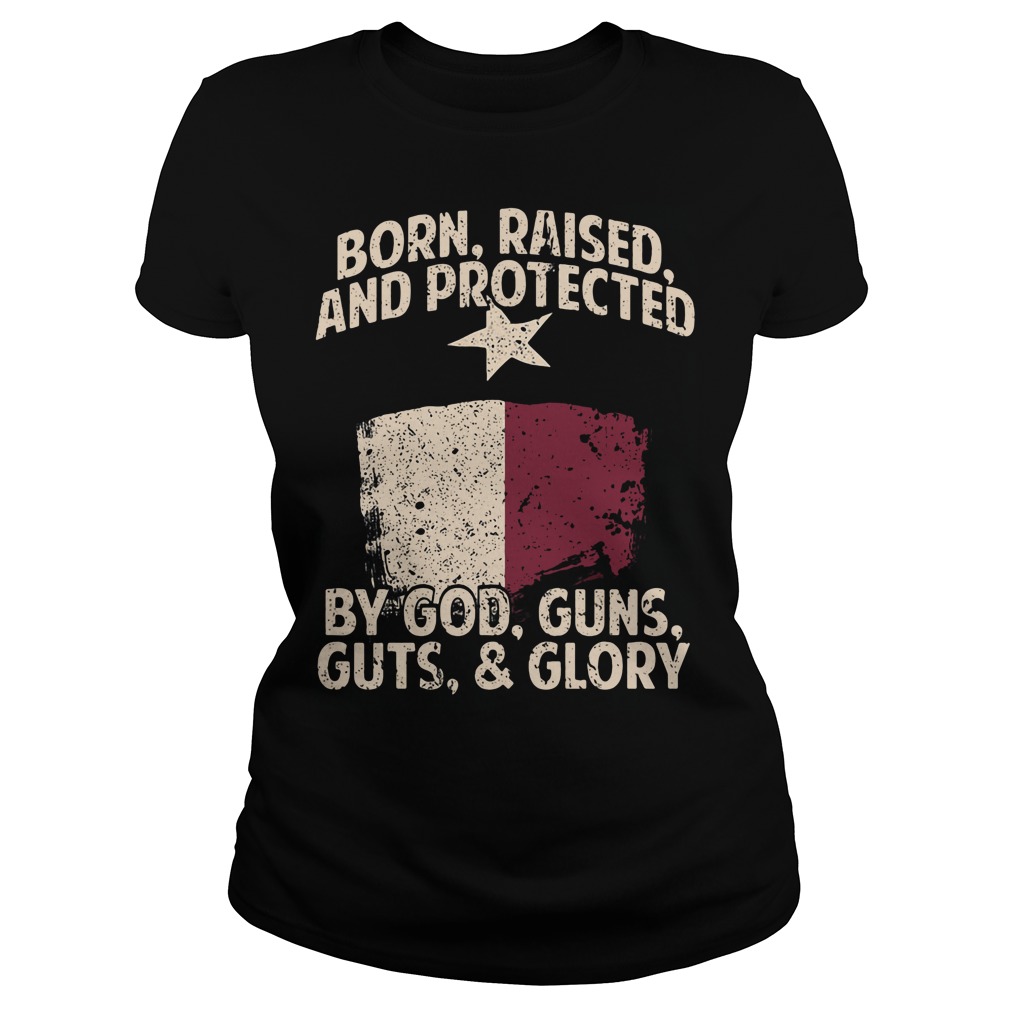 Born Raised And Protected By God Guns Guts And Glory Shirt, Hoodie, Sweater, Ladies T-Shirt