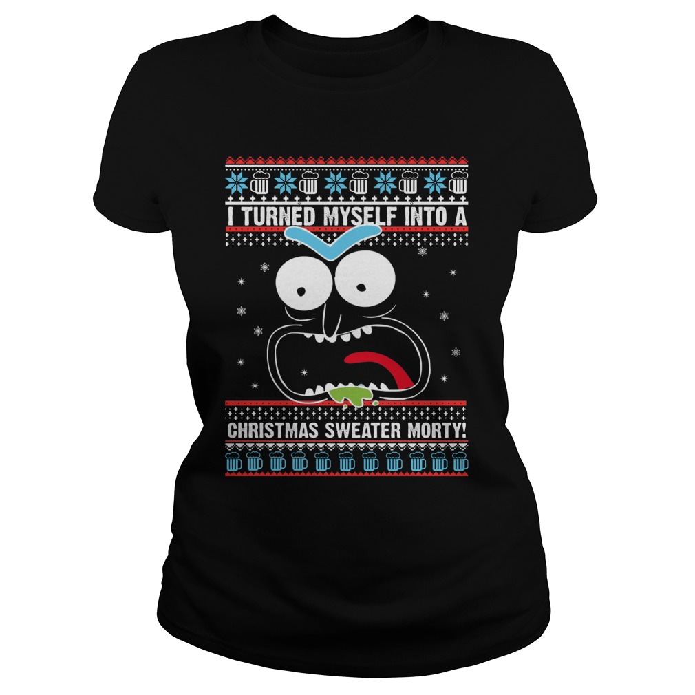 I Turned Myself Into A Christmas Sweater Morty Sweat Shirt, Hoodie, Ladies T-Shirt