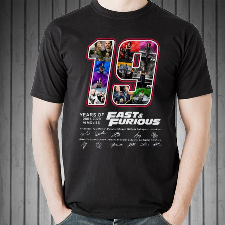 Official 19 Years Of Fast & Furious 2001 2020 10 Movies Signatures shirt, Hoodie, Sweater, Longsleeve T-Shirt For Men and Women
