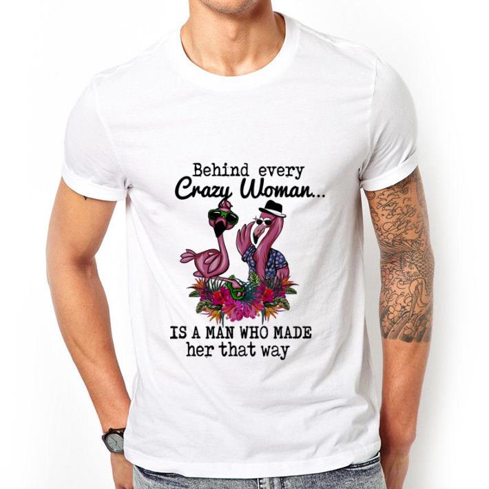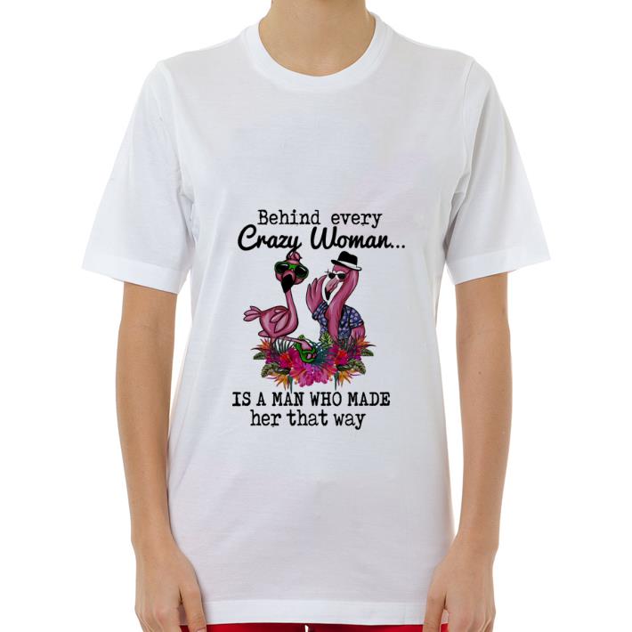 Official Flamingos behind every crazy woman is a man who made her that way shirt, Hoodie, Sweater, Longsleeve T-Shirt For Men and Women