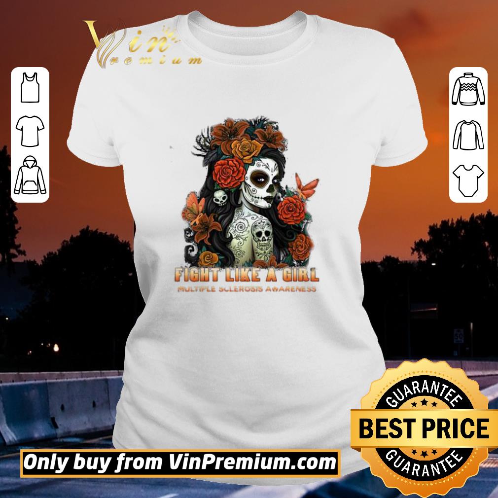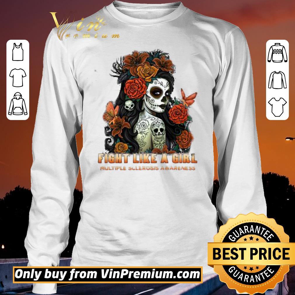 Official Skull fight like a girl multiple sclerosis awareness flowers butterfly shirt, Hoodie, Sweater, Longsleeve T-Shirt For Men and Women
