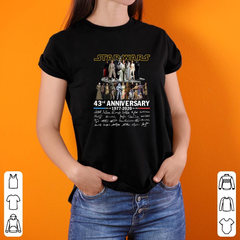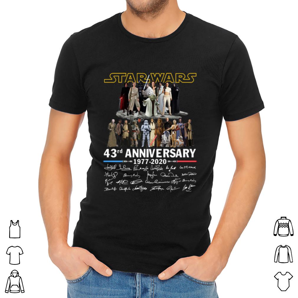 Official Star Wars all character 43rd anniversary 1977 2020 all signature shirt, Hoodie, Sweater, Longsleeve T-Shirt For Men and Women