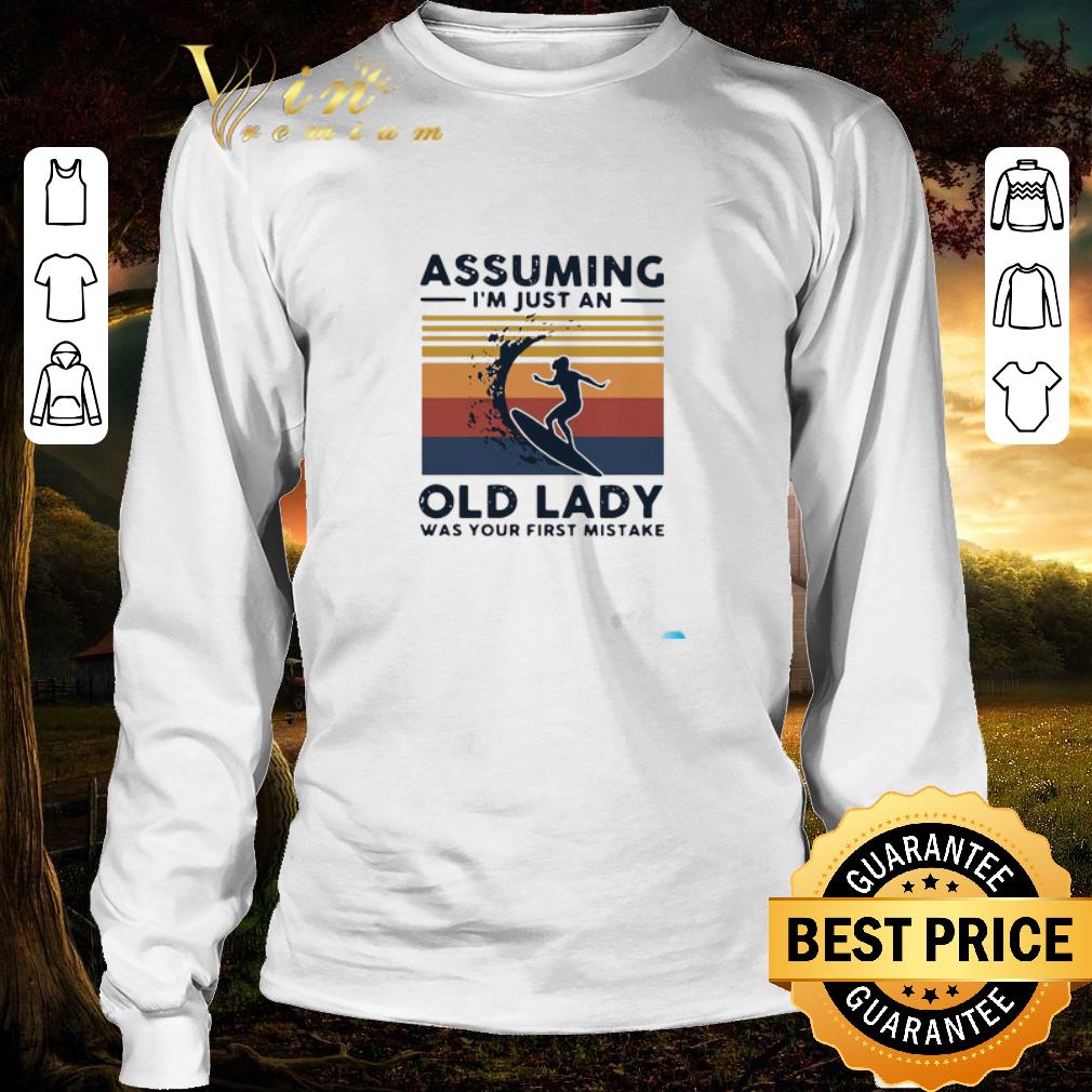 Official Vintage surfing assuming i’m just an old lady was your first mistake shirt, Hoodie, Sweater, Longsleeve T-Shirt For Men and Women