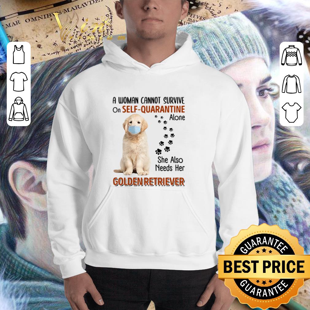 Original A woman cannot survive self-quarantine alone Golden Retriever Coronavirus shirt, Hoodie, Sweater, Longsleeve T-Shirt For Men and Women