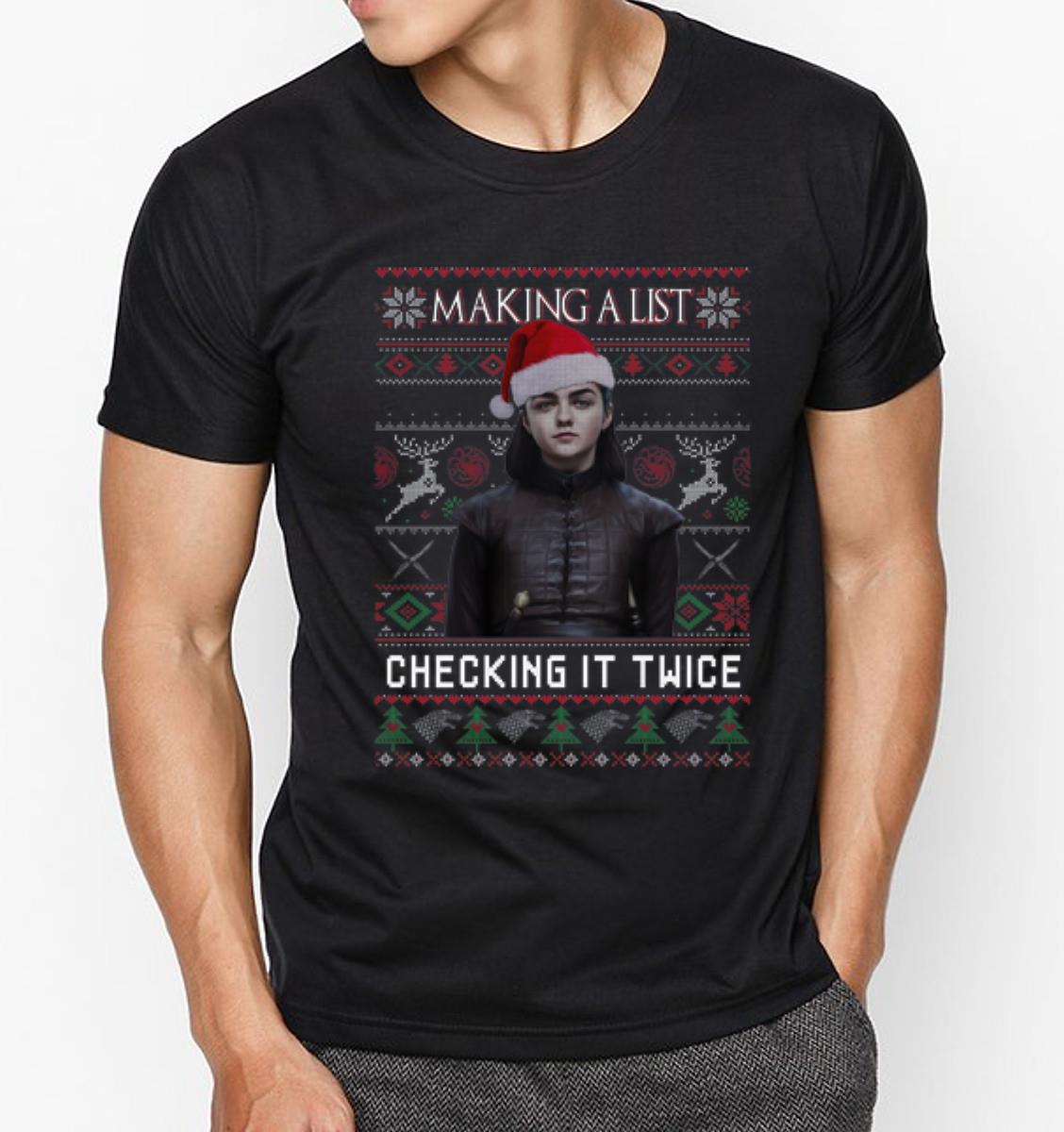 Premium Arya Stark Making A List Checking It Twice GOT Ugly Christmas shirt, Hoodie, Sweater, Longsleeve T-Shirt For Men and Women