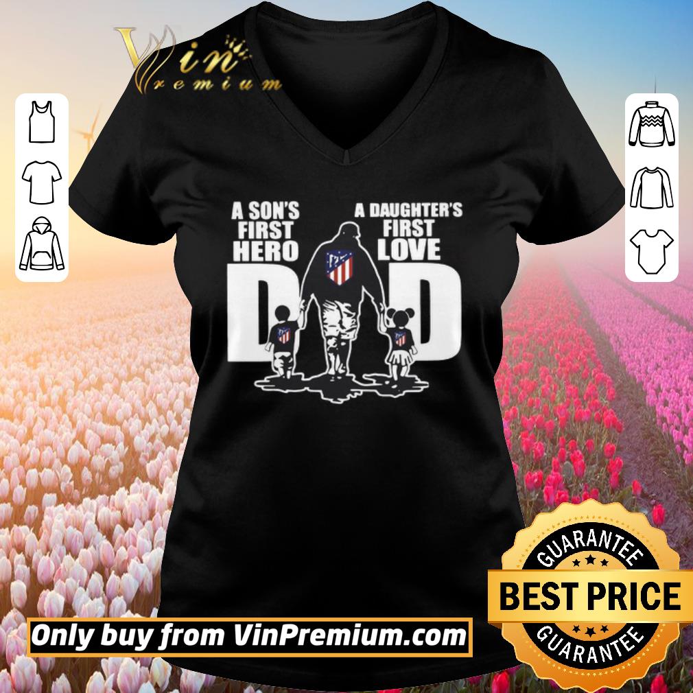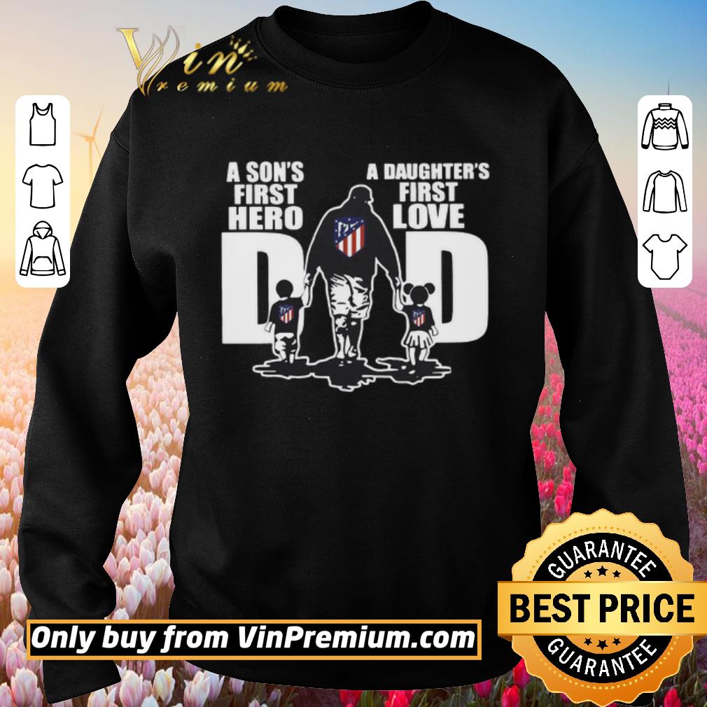Premium Atlético Madrid Dad a son’s first hero a daughter’s first love shirt, Hoodie, Sweater, Longsleeve T-Shirt For Men and Women
