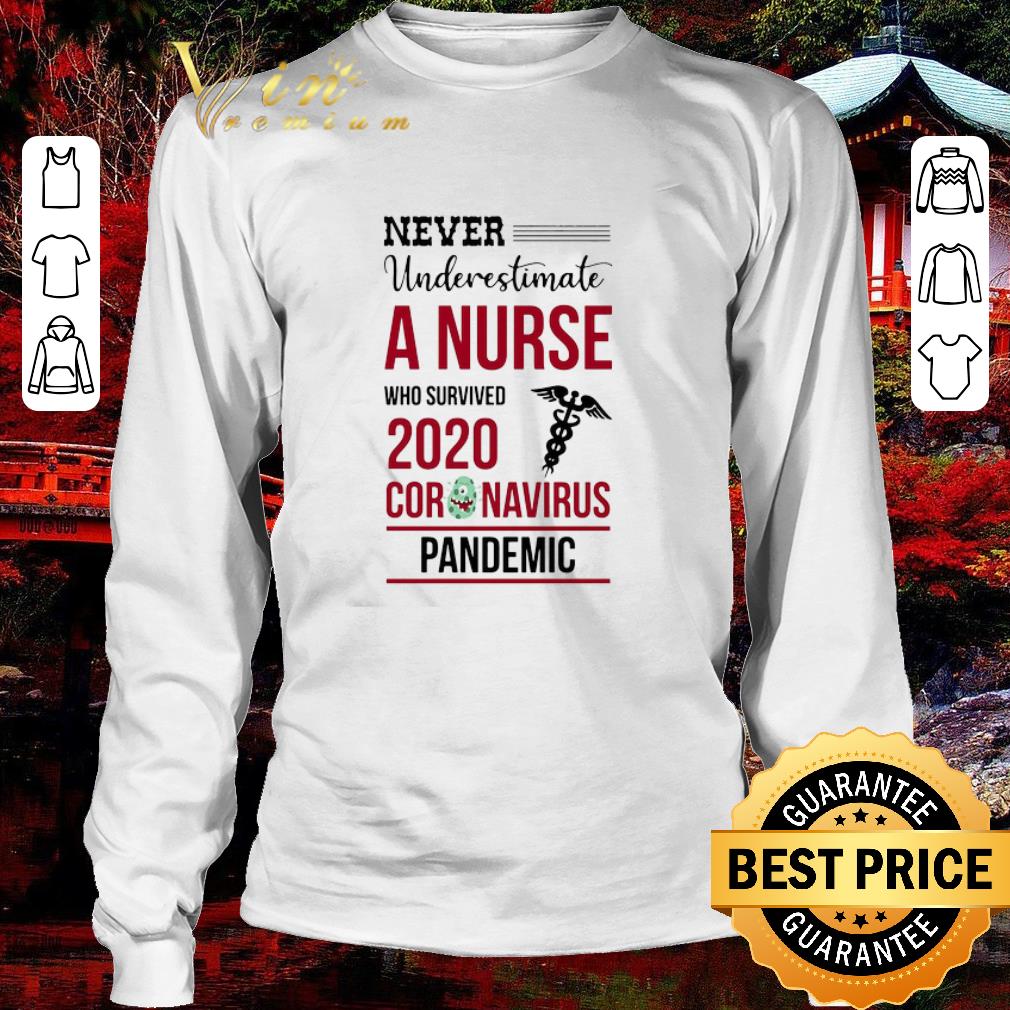 Premium Never Underestimate A Nurse Who Survived 2020 Coronavirus Covid-19 shirt, Hoodie, Sweater, Longsleeve T-Shirt For Men and Women