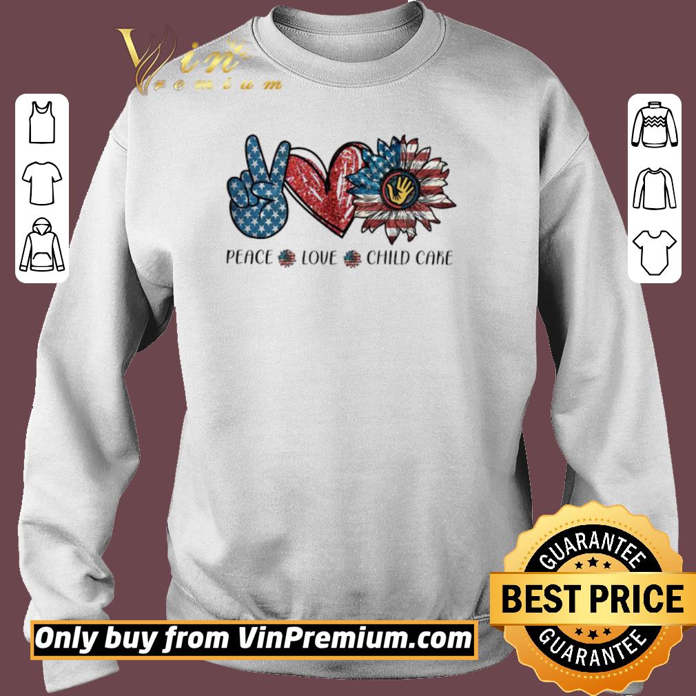 Premium Peace love child Care sunflower American flag shirt, Hoodie, Sweater, Longsleeve T-Shirt For Men and Women