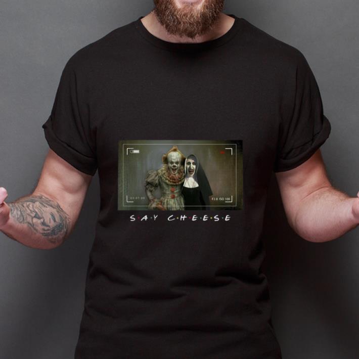 Premium Say Cheese Pennywise And Valak shirt, Hoodie, Sweater, Longsleeve T-Shirt For Men and Women