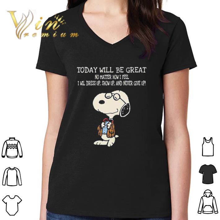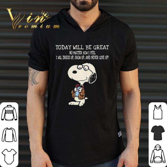 Premium Snoopy today will be great no matter how i feel i will dress up show up and never give up shirt, Hoodie, Sweater, Longsleeve T-Shirt For Men and Women