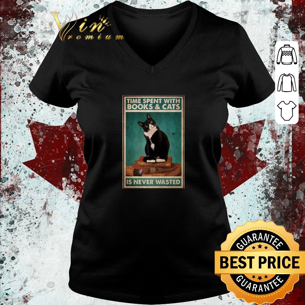 Pretty Black cat Time Spent With Books And Cats Is Never Wasted shirt, Hoodie, Sweater, Longsleeve T-Shirt For Men and Women