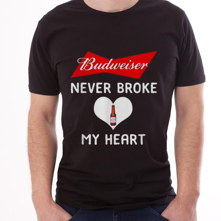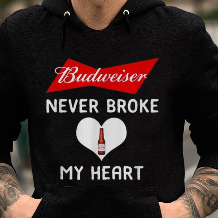 Pretty Budweiser Never Broke My Heart Beer Lovers shirt, Hoodie, Sweater, Longsleeve T-Shirt For Men and Women