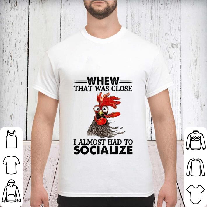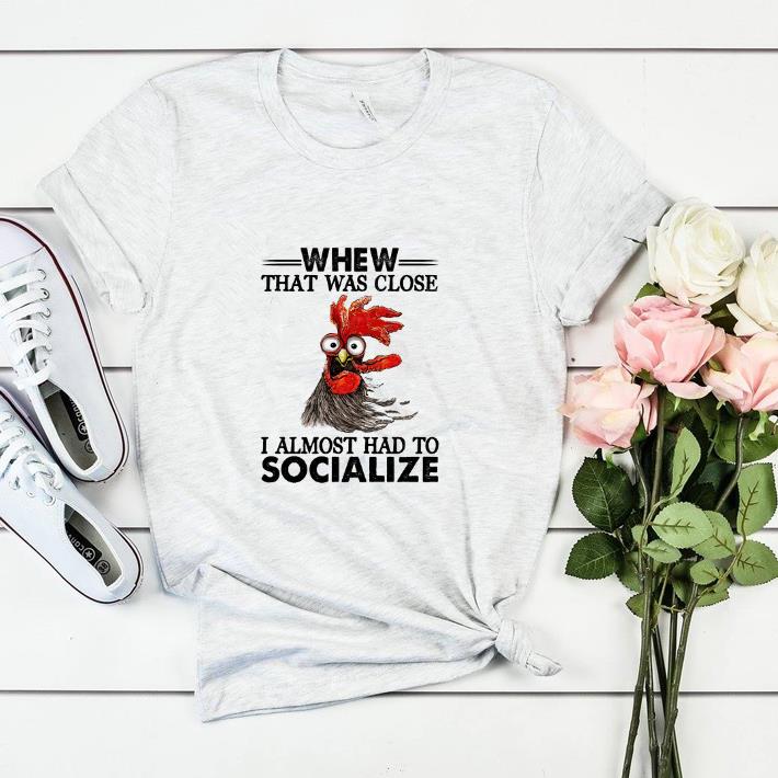 Pretty Chicken whew that was close i almost had to socialize shirt, Hoodie, Sweater, Longsleeve T-Shirt For Men and Women