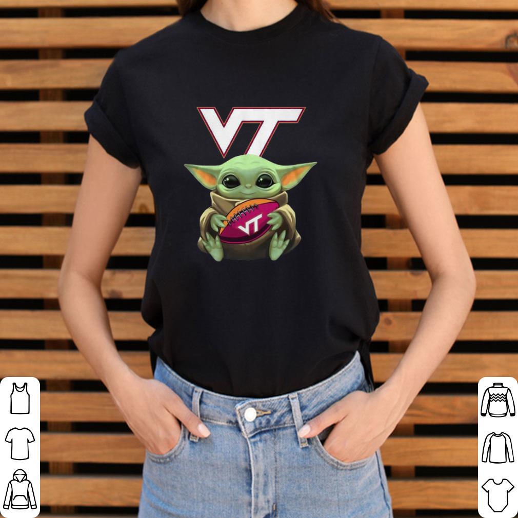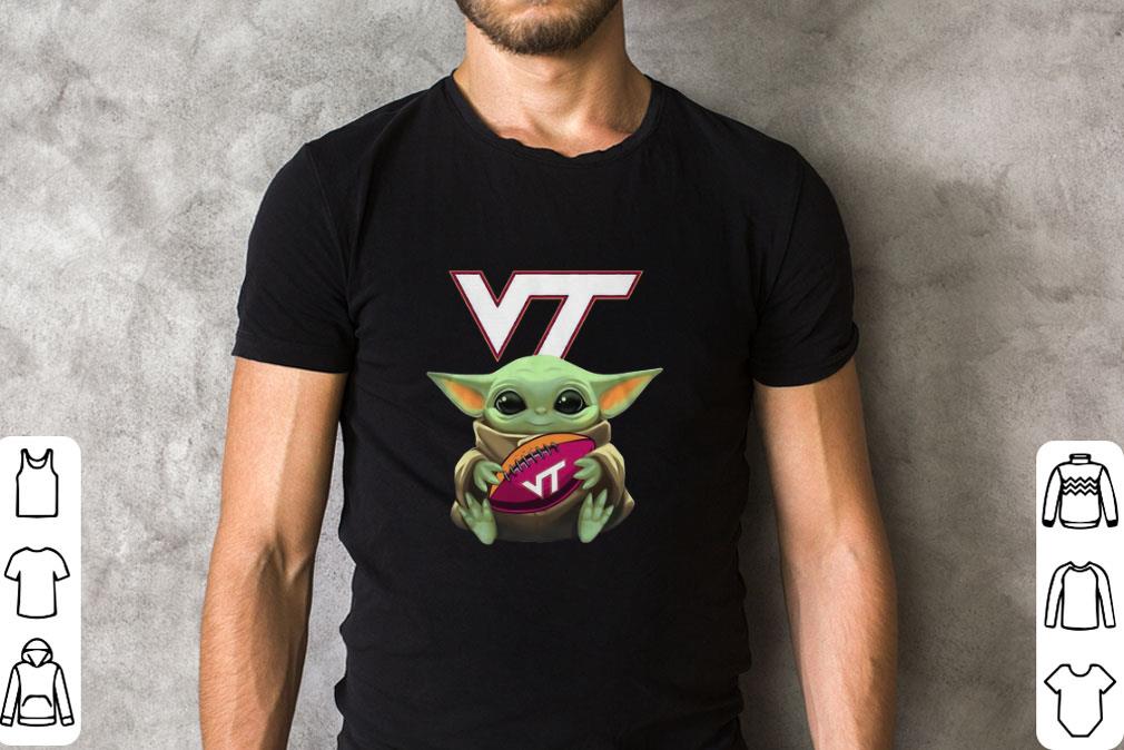 Source: Hot Top Baby Yoda Hug Virginia Tech Ball Logo Star Wars shirt