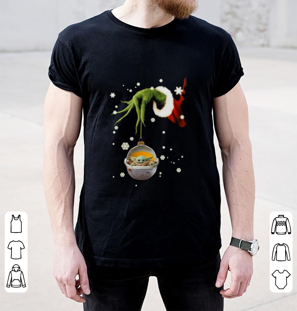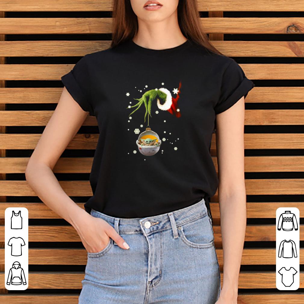 Top Grinch hand holding Baby Yoda christmas shirt, Hoodie, Sweater, Longsleeve T-Shirt For Men and Women